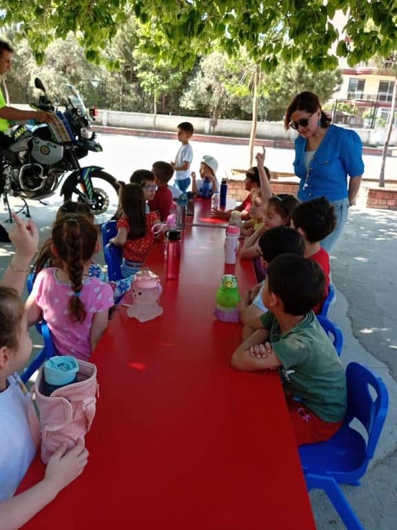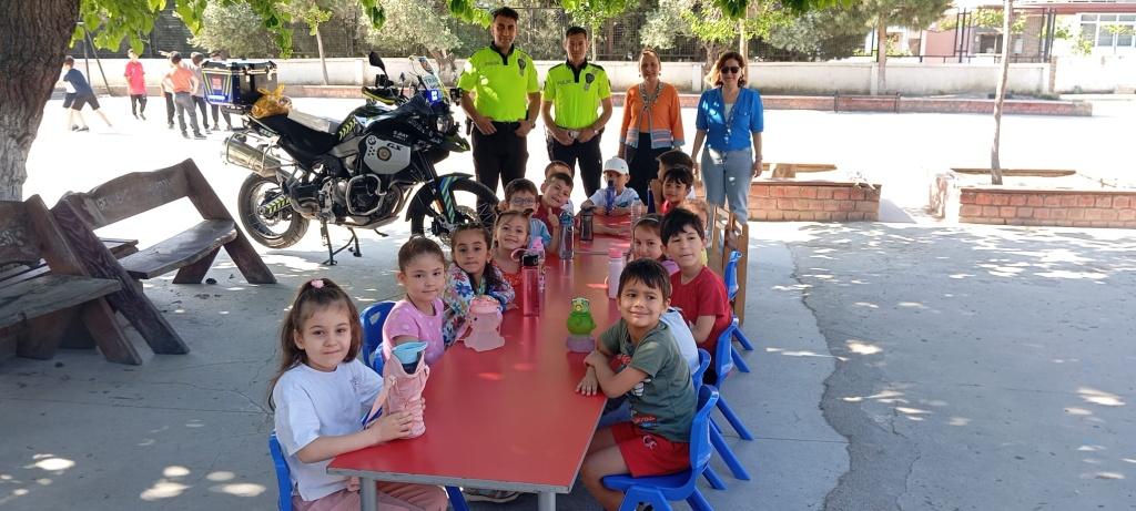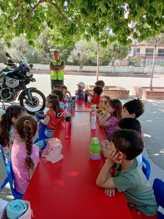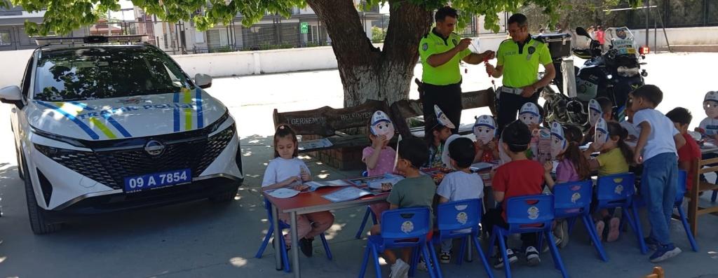 Okulumuzun anasınıfı öğrencilerine Germencik İlçe Emniyet Müdürlüğü trafik ekibi personelleri tarafından Karayolunda Güvenli Trafik Eğitimi verildi. Emniyet personelleri öğrencilerimize düdük, maske ve boyama kitapları hediye ettiler. Kendilerine katkılarında dolayı teşekkür ederiz.